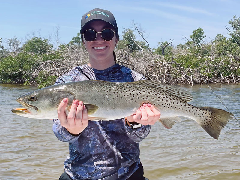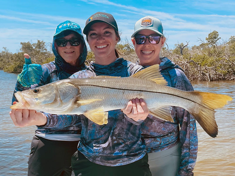 Lyndra, shown here, from Zephyr Hills, potted her PB Trout and Snook fishing with friends and Capt. Brandon while on a WIFGA event.